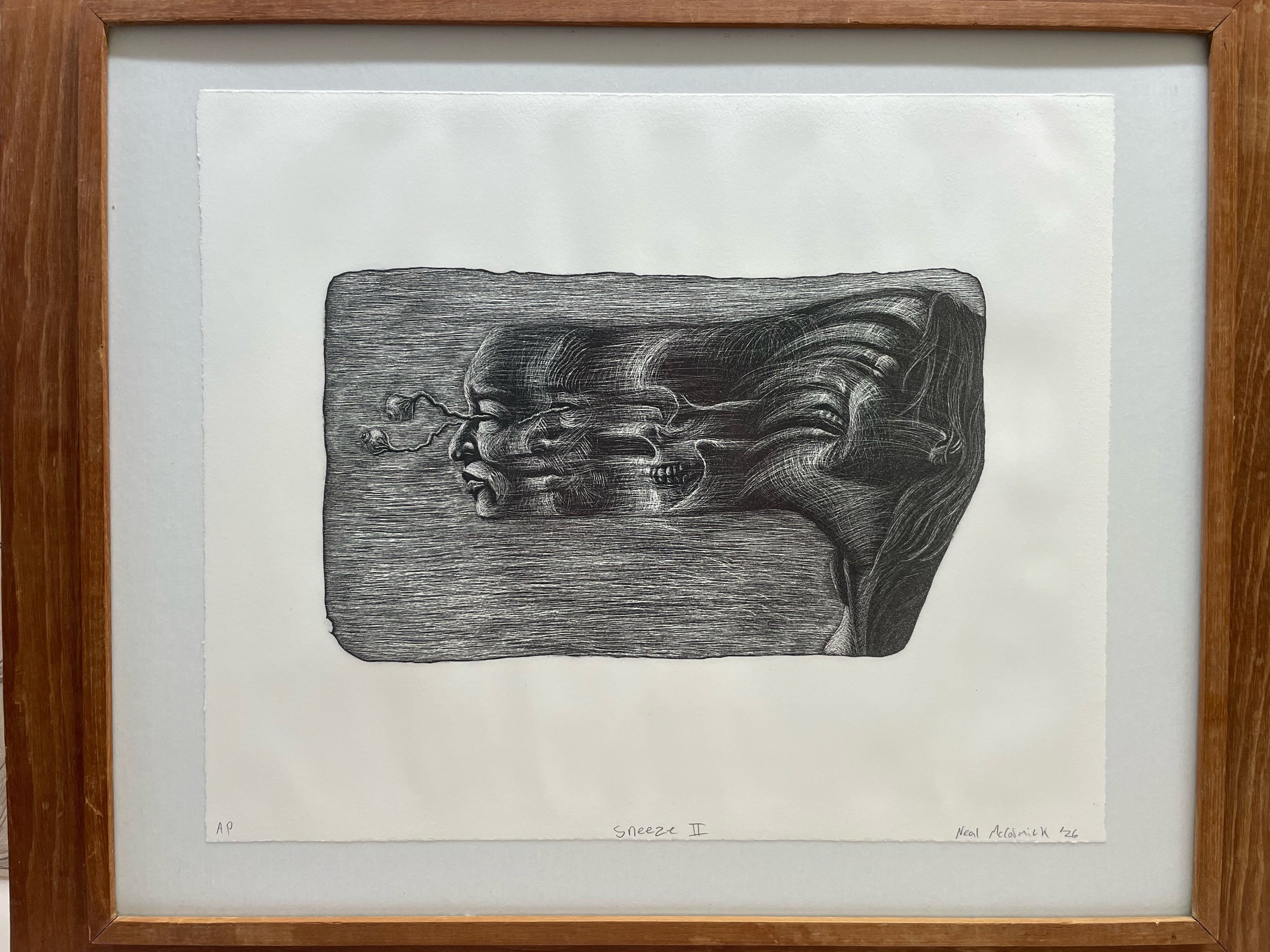 “Sneeze II” stone lithograph $250.00 Edition of 10, 15” by 18” Store › “Sneeze II” stone lithograph Add To Cart Added! Edition of 10, 15” by 18”
